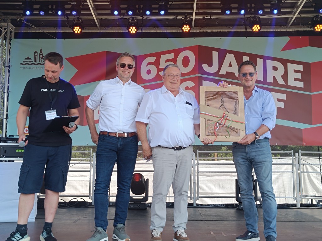 Eröffnet wurde das Fest musikalisch durch den Musikzug der Freiwilligen Feuerwehr Hohen Neuendorf, bevor Bürgermeister Steffen Apelt die Gäste offiziell begrüßte. Aus der Niedersächsischen Partnerstadt Fürstenau überbrachten Samtbürgermeister Matthias Wübbel und Bürgermeister Ernst Ehmke ihre Glückwünsche für das Ortsteiljubiläum.