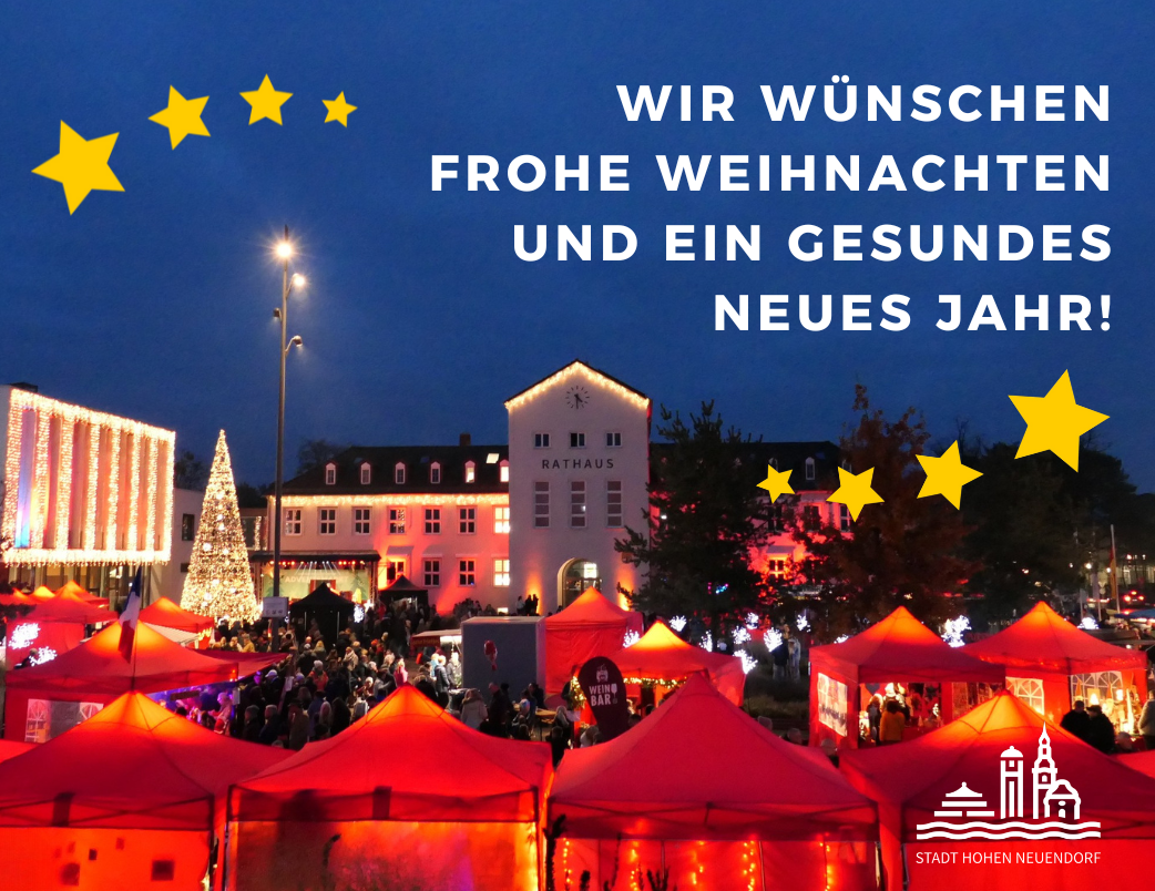 Die Stadt Hohen Neuendorf wünscht allen Hohen Neuendorferinnen und Hohen Neuendorfern frohe und besinnliche Weihnachten im Kreise ihrer Familien und Freunde sowie einen guten Rutsch in ein glückliches und gesundes neues Jahr!