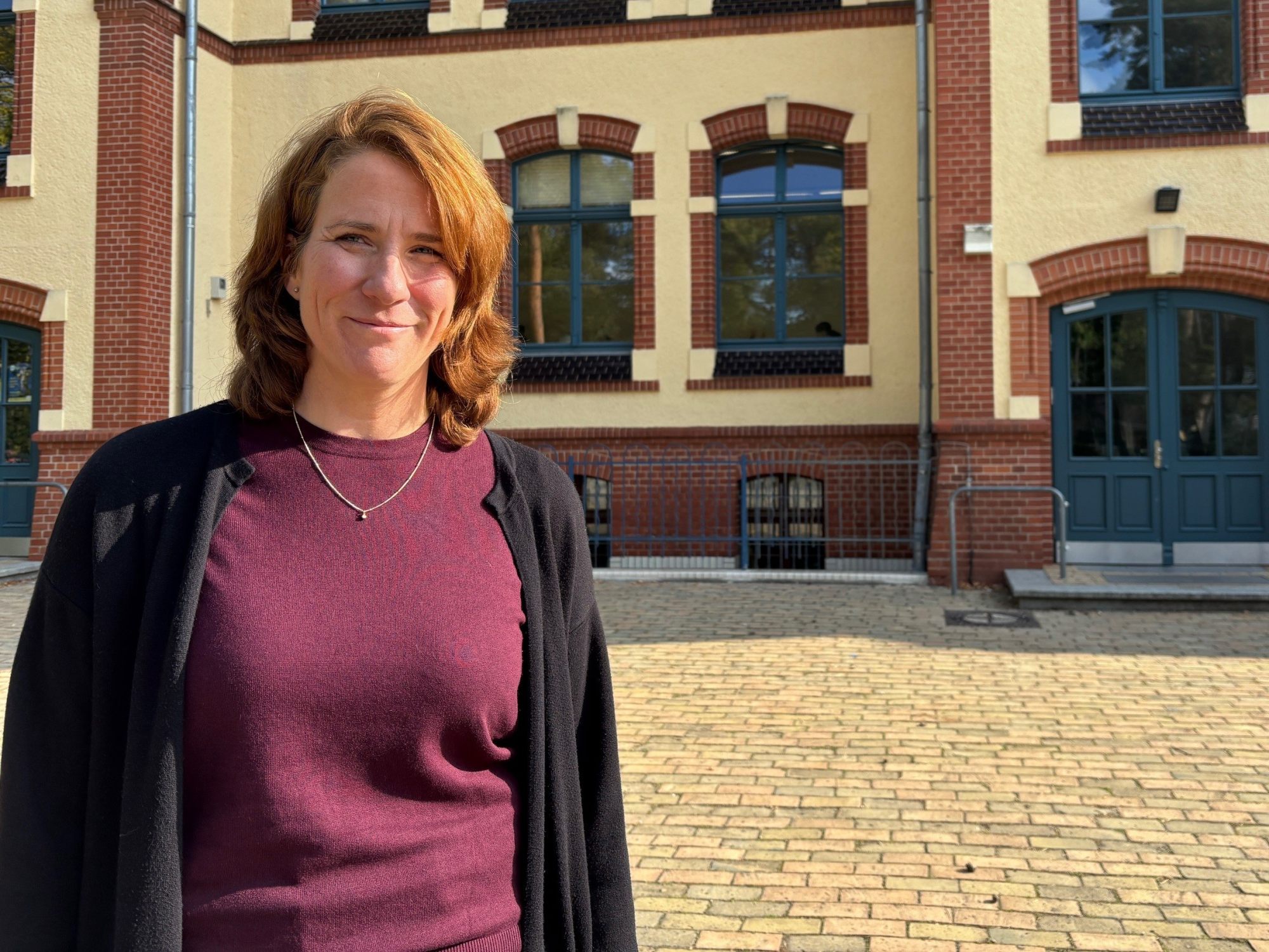 Schulleiterin Martina Bachert vor dem Gebäude der Dr. Hugo Rosenthal Oberschule