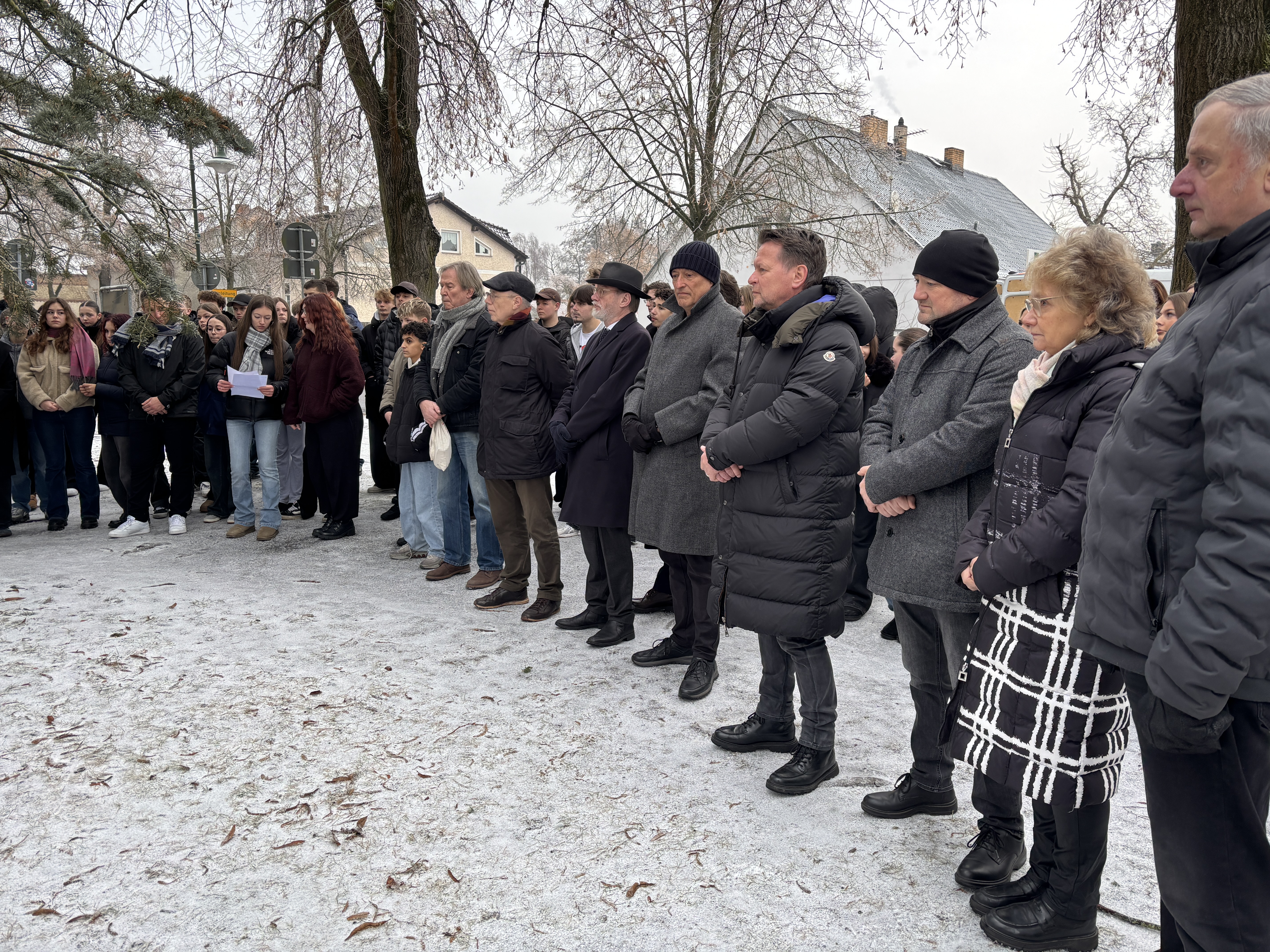 Schülerinnen und Schüler der Käthe-Kollwitz-Gesamtschule Mühlenbeck rahmten mit bewegenden Redebeiträgen die Gedenkveranstaltung ein. Sie verdeutlichten, dass Unmenschlichkeit oft mit Gleichgültigkeit beginne: „Es gibt immer noch Rassismus und Antisemitismus in der Welt. Wir müssen die Geschichte weitertragen gegen das Vergessen und gegen Relativierung.“