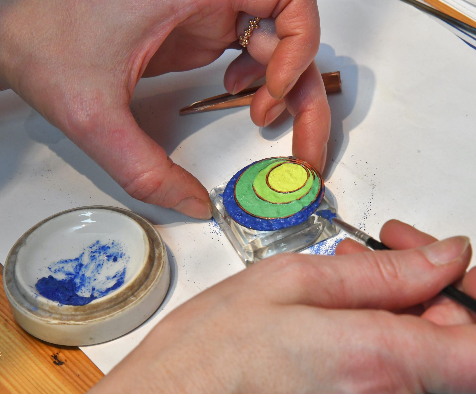 ALLES IN FARBE! Im Emaillier-Workshop stellen wir Kettenanhänger, Ohrringe, Schlüsselanhänger, Knöpfe o.ä. her, welche anschließend mit Feueremaille gestaltet werden. Die Überraschung bringt der Brand im Muffelofen, denn erst nach dem Abkühlen kommen die einzelnen Farben voll zu Geltung und die Schmuckstücke bekommen ihr unverwechselbares Aussehen mit dem schönen Glanz der Emaille.