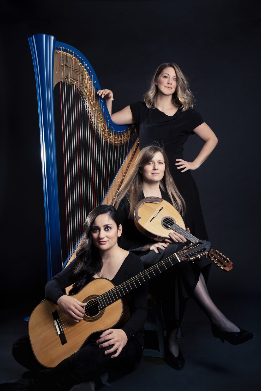 Eine Mandoline, eine Gitarre, eine Harfe - 3 Frauen, 61 Saiten. Nicht mehr und nicht weniger braucht es, um eine neue musikalische Welt zu erschließen. "sixty1strings“ - unter diesem Namen fanden sich 2013 die renommierte Musikerinnen Ekaterina Solovey (Mandoline), Konstanze Kuss (Harfe) und Negin Habibi (Gitarre) zusammen, die mit ihrer Leidenschaft für Zupfinstrumente wunderbare Klangfarben erschaffen und ein schillernder Exot im klassischen Konzertleben sind. Gespielt wird an diesem Abend auf modernen Konzertinstrumenten.