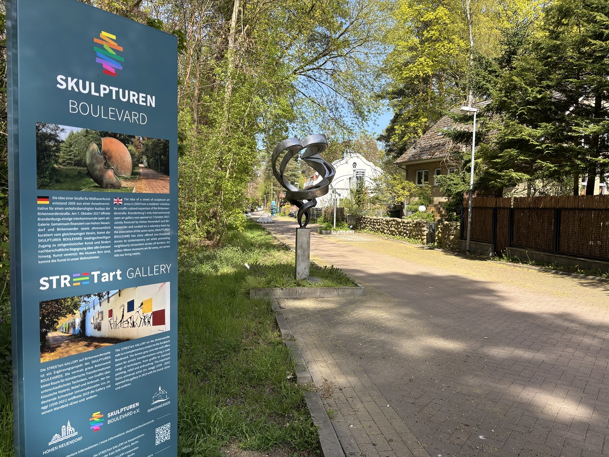 wie jedes Jahr heißen wir Euch am ersten Mai-Wochenende, am Samstag, den 2. Mai, herzlich willkommen zum Brandenburger Tag der Offenen Ateliers. An der Streetart Gallery in Birkenwerder präsentieren wir eine beeindruckende, 5 Meter breite Fotoinstallation des deutsch-russischen Universalkünstlers Sergej Dott. Und wir feiern den neuen Standort und damit den langfristigen Verbleib der Skulptur »Kugelvariation VI« auf dem Boulevard (vormals Rathausplatz Birkenwerder). Dem Bildhauer Christoph Mertens gilt unser Dankeschön für die Überlassung seines Kunstwerks als Dauerleihgabe. Wir freuen uns auf einen schönen Tag, auf ein Wiedersehen und auf spannende neue Begegnungen!