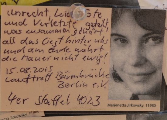 In Gedenken an das Maueropfer Marienetta Jirkowsky lädt die Stadt an ihrem 35. Todestag am 22.11.2015 zu einer Kranzniederlegung und einer Filmvorführung ein.