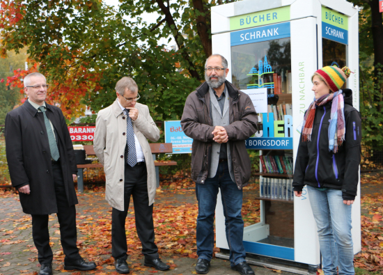 Eine ehemalige Telefonzelle lädt am Borgsdorfer Bahnhof Bücherfreunde ein, ihr ausgelesenes Buch gegen ein anderes zu tauschen. Die Borgsdorfer sind begeistert.